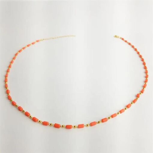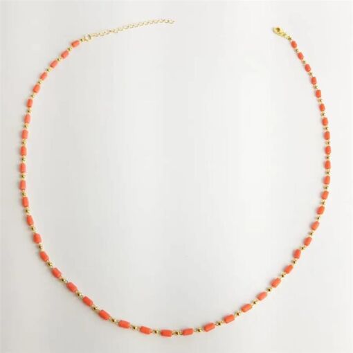 COLAR 45+5CM ESFERAS/PEDRAS NATURAIS RETANG LARANJ