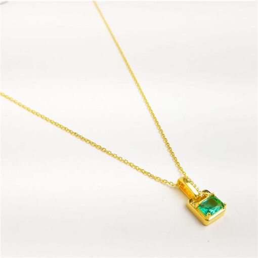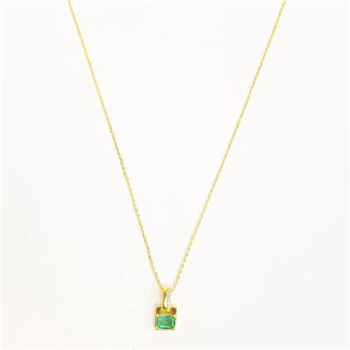 COLAR VENEZIANA PINGENTE QUADRADO COM PEDRA RETANGULAR VERDE NO