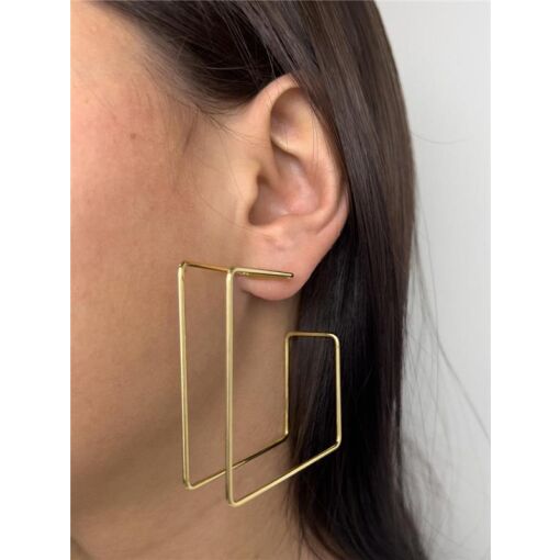 MEIA ARGOLA DUPLA ARO LISO QUADRANGULAR| | BANHADO EM OURO 18K