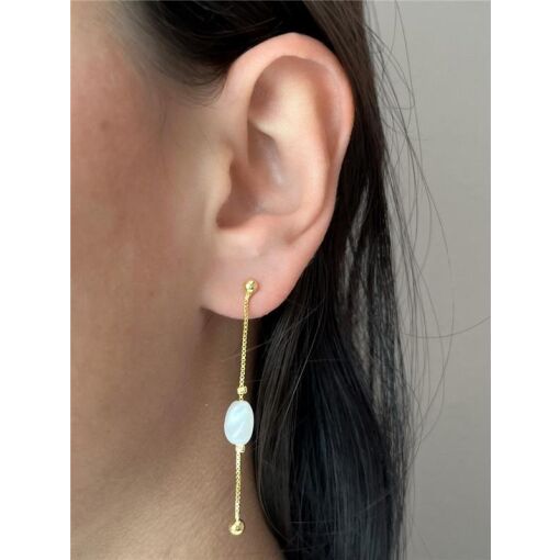 BRINCO GOTA LISA CENTRO MEIA PÉROLA | BANHADO EM OURO 18K