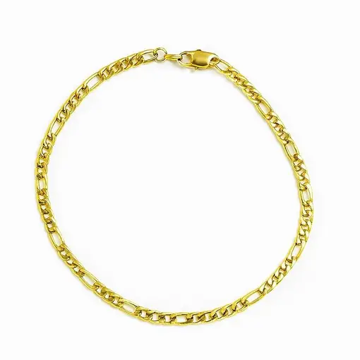 PULSEIRA MASCULINA ELO FÍGARO PRENSADO 3MM | BANHADO EM OURO 18K