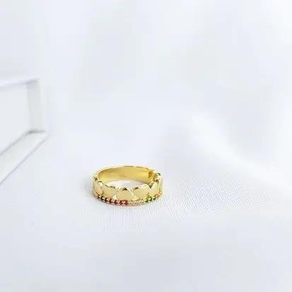 2. ANEL 1ARO EM CORACOES LISOS E ARO CRAV COLOR| BANHADO EM OURO 18K