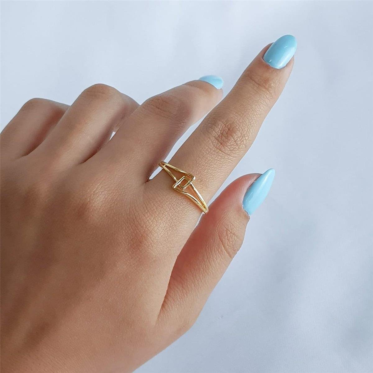 ANEL 2 ARO QUADRADOS INTERCALADOS VAZADOS | BANHADO EM OURO 18K