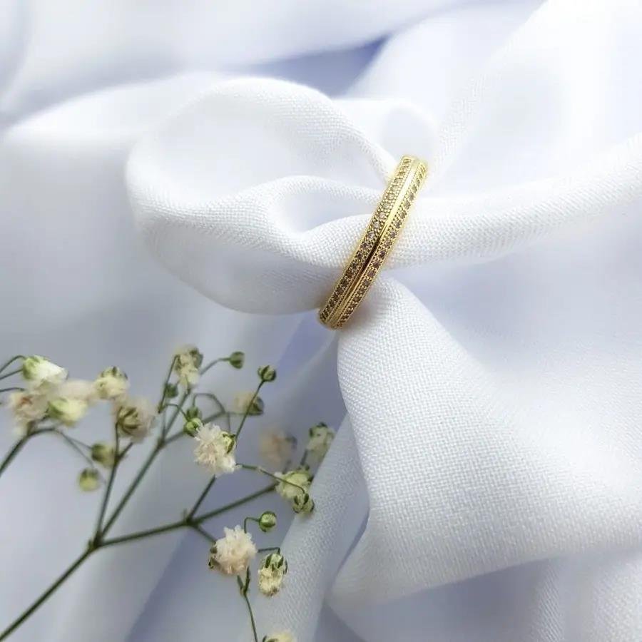 ANEL 2 FILEIRA CRAV 1 FILETE EM DOURADO AO MEIO| BANHADO EM OURO 18K