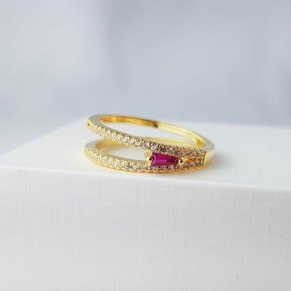 2. ANEL ABERTURA EM V CRAV COM ZIRC ROSA | BANHO 18K ECOMM