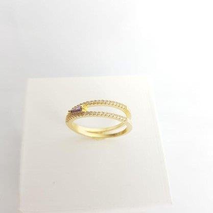 2. ANEL ABERTURA EM V CRAV COM ZIRCONIA LILAS | BANHADO EM OURO 18K