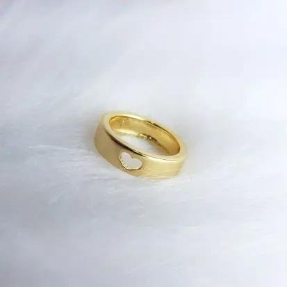 ANEL ALIANCA LISA COM CORACAO VAZADO AO MEIO | BANHADO EM OURO 18K