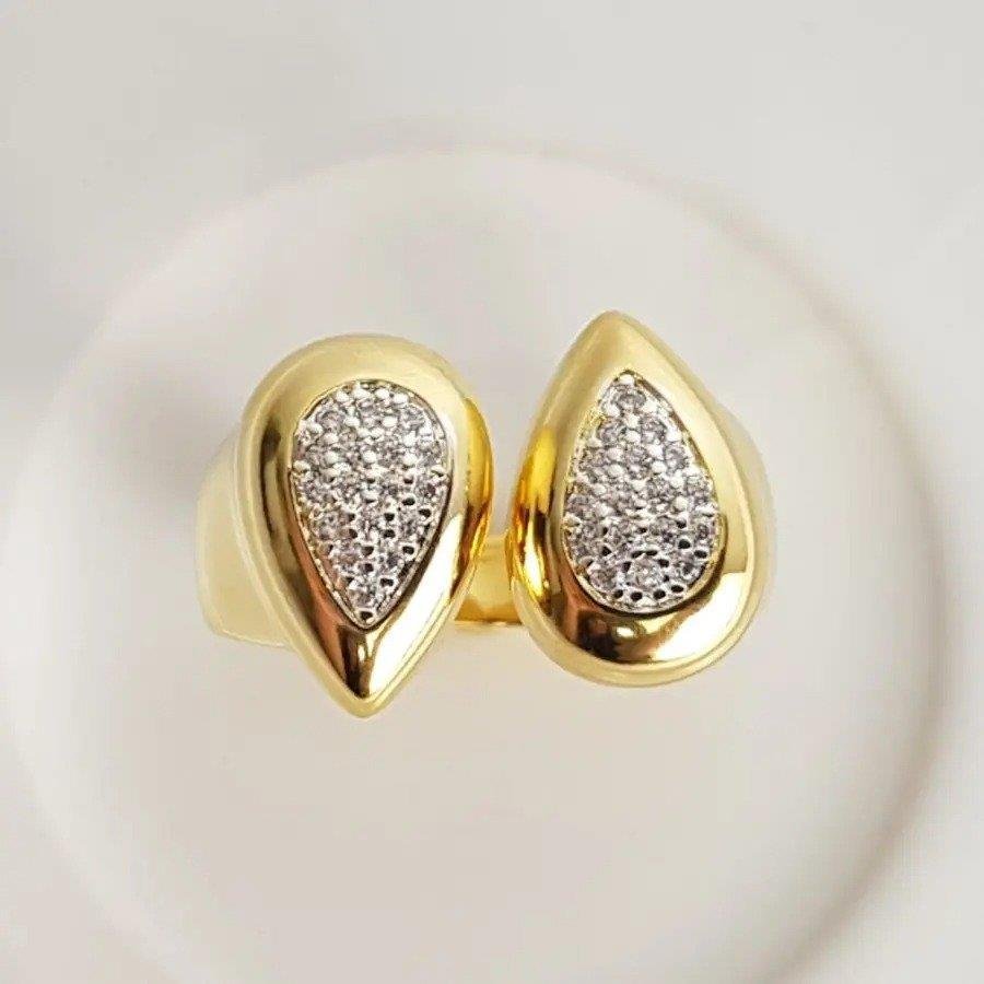 ANEL ARO ABERTO 2 GOTAS PONTA DETALHE MICROCRAV| BANHADO EM OURO 18K