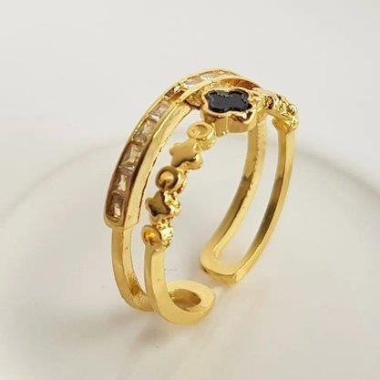 2. ANEL ARO ABERTO FILETE BAGUETE/TREVO MADRE PEROLA| BANHADO EM OURO 18K