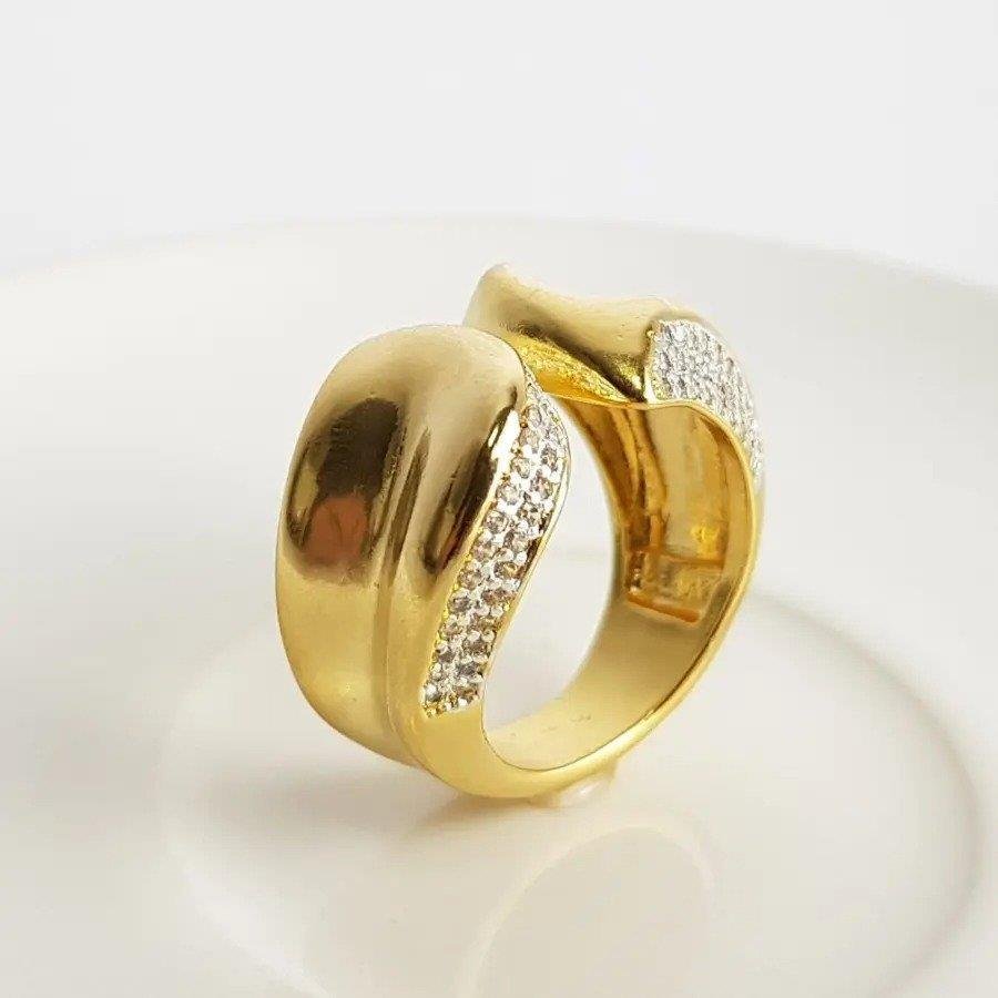 2. ANEL ARO ABERTO MAXIMALISTA LISO C/BORDA CRAV| BANHADO EM OURO 18K