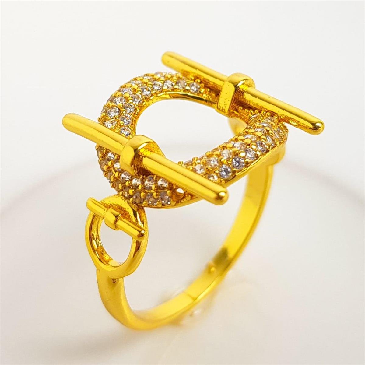2. ANEL ARO EM CÍRCULO CRAVEJADO LATERAL 2 FILETES LISOS | BANHADO EM OURO 18K