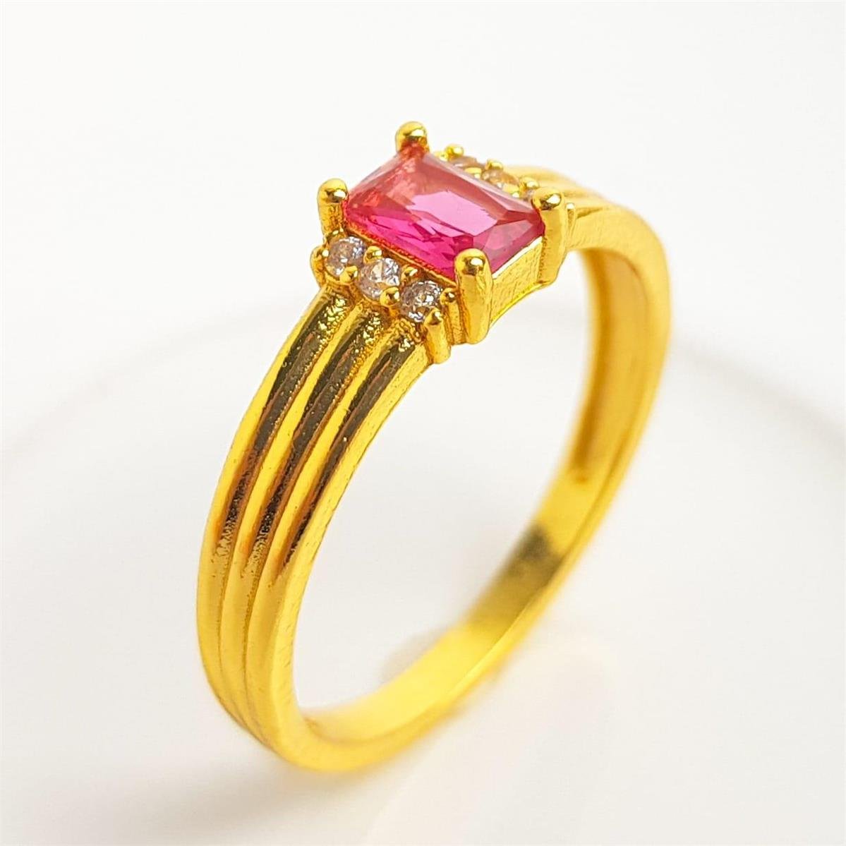 2. ANEL ARO EM LINHAS LISAS ZIRCÔNIA ROSA ESCURO REDOR CRAVEJADO|BANHADO EM OURO 18K