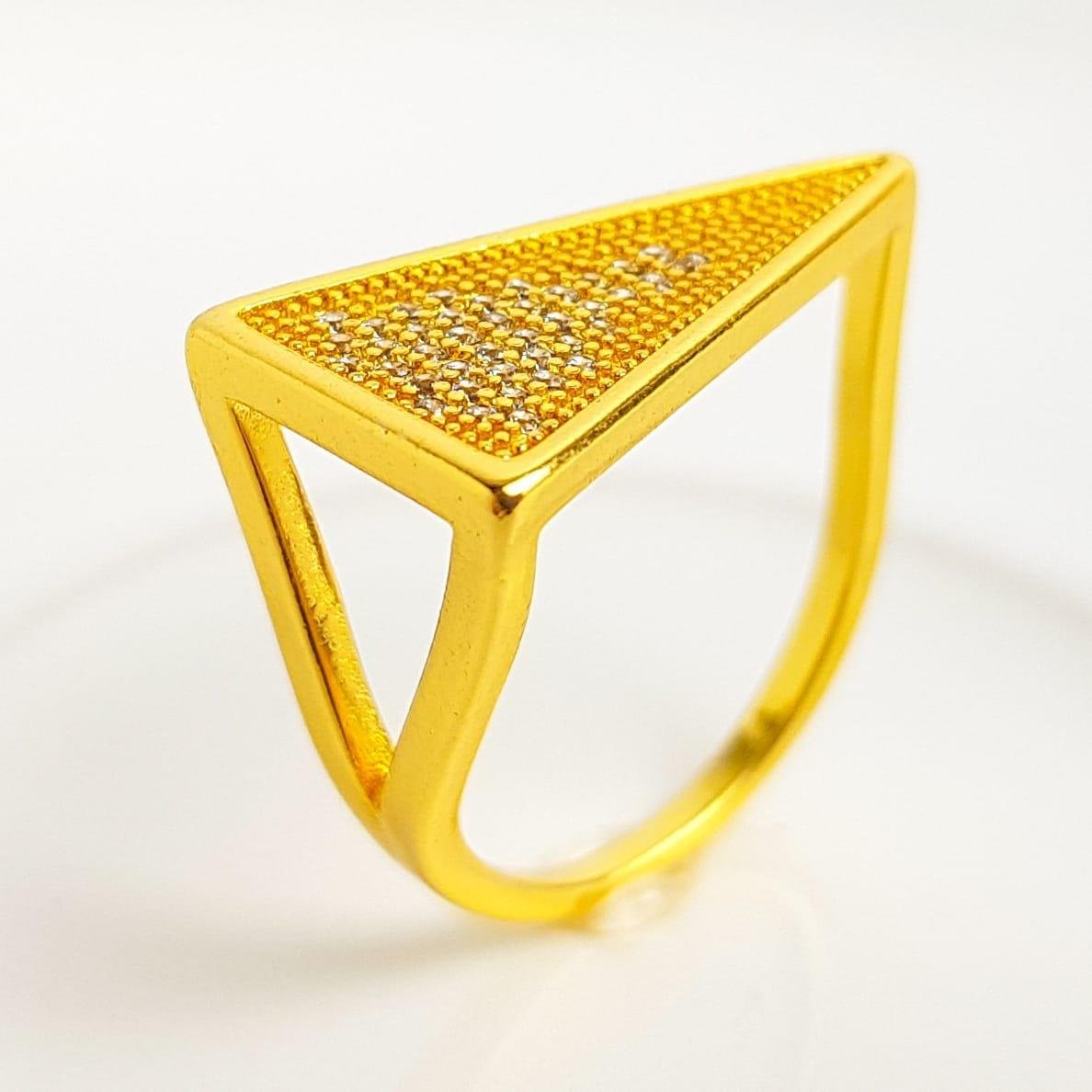 2. ANEL ARO EM TRIÂNGULO BASE LISA MEIO CRAVEJADO | BANHADO EM OURO 18K