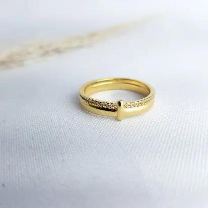 2. ANEL ARO LISO/ ARO CRAV DETALHE LISO AO MEIO| BANHADO EM OURO 18K