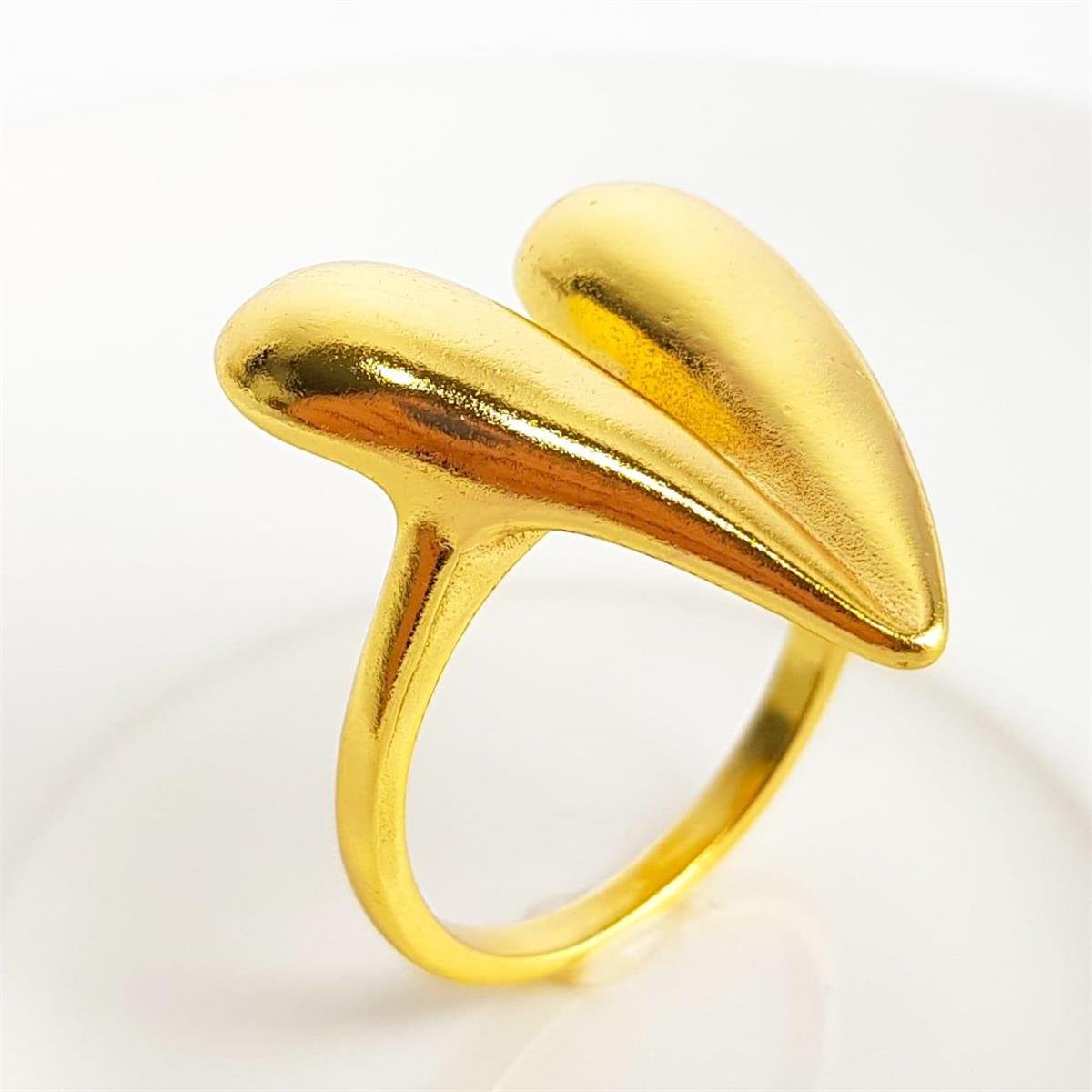 2. ANEL ARO LISO COM DUAS GOTAS ALONGADAS FORMATO CORAÇÃO| BANHADO EM OURO 18K