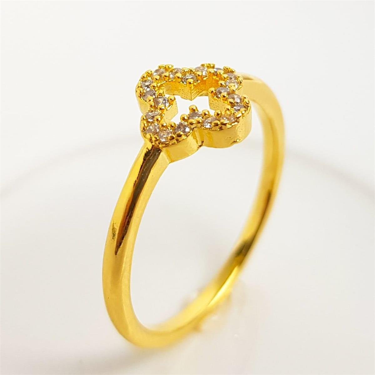 2. ANEL ARO LISO COM TREVO VAZADO CRAVEJADO|BANHADO EM OURO 18K