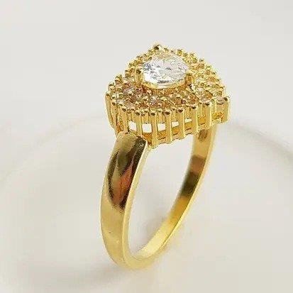 2. ANEL ARO LISO CORACAO 1,1CM CRISTAL REDOR CRAV | BANHO DE OURO 18K