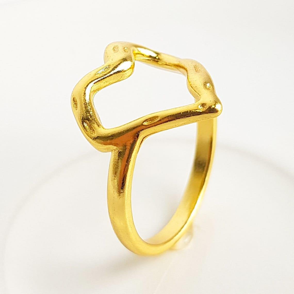 ANEL ARO LISO CORAÇÃO EFEITO DERRETIDO | BANHADO EM OURO 18K