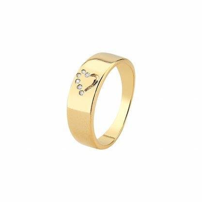 ANEL ARO LISO CORACAO METADE CRAVEJADO | BANHADO EM OURO 18K