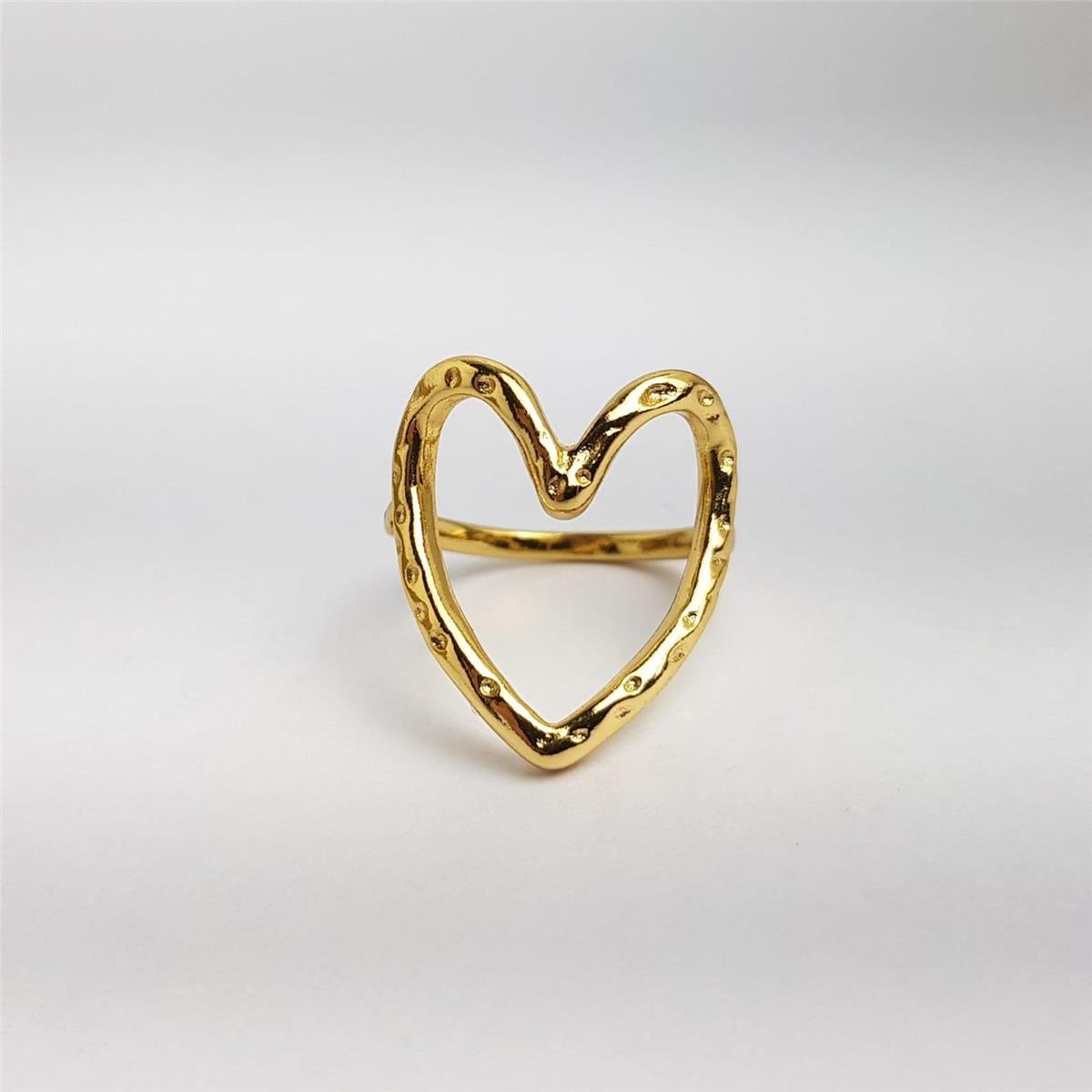 ANEL ARO LISO CORACAO VAZADO DETALHES RELEVO EM PONTOS B.OURO