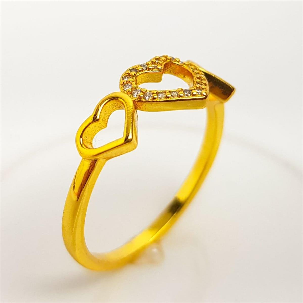 2. ANEL ARO LISO ENTREMEIO 3 CORAÇÕES VAZADOS LISO/CRAVEJADO | BANHADO EM OURO 18K