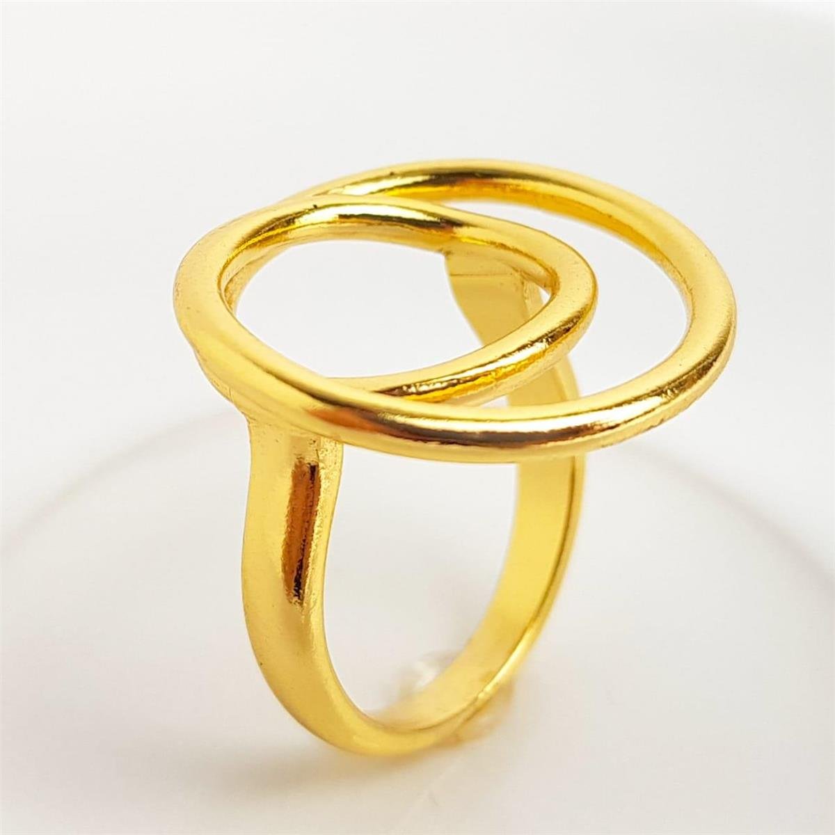 2. ANEL ARO LISO FRENTE EM CÍRCULO ENTRELAÇADO LISO |BANHADO EM OUO 18K