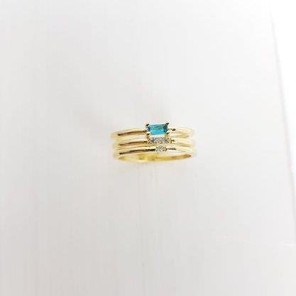 ANEL ARO TRIPLO ZIRC RETANG AZUL CLARO| BANHADO EM OURO 18K