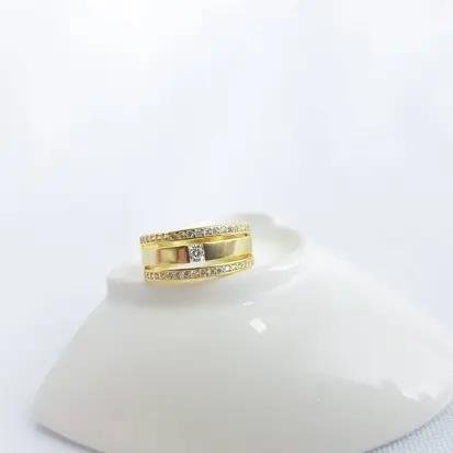ANEL ARO TRIPLO ALIANCA ZIRC APARADORES| BVANHADO EM OURO 18K