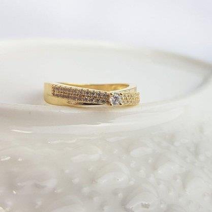 2. ANEL ARO X CRAV E LISO PEDRINHA NO MEIO| BANHADO EM OURO 18K