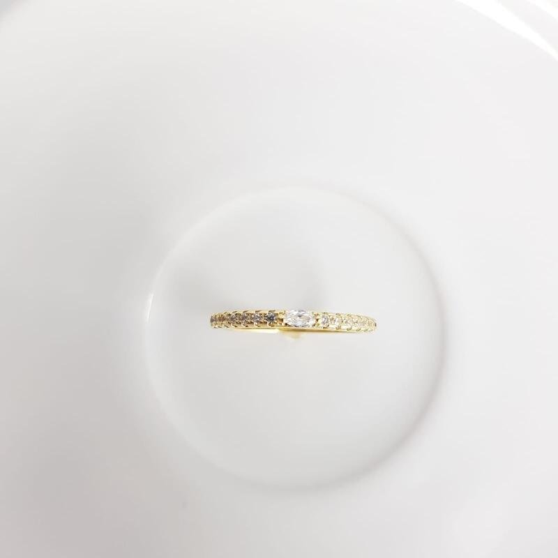 ANEL BANHO DOURADO MEIA ALIANCA CRAV| BANHADO EM OURO 18K