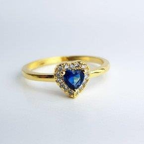 2. ANEL CORACAO AZUL ROYAL BORDA CRAVEJADA|BANHADO EM OURO 18K