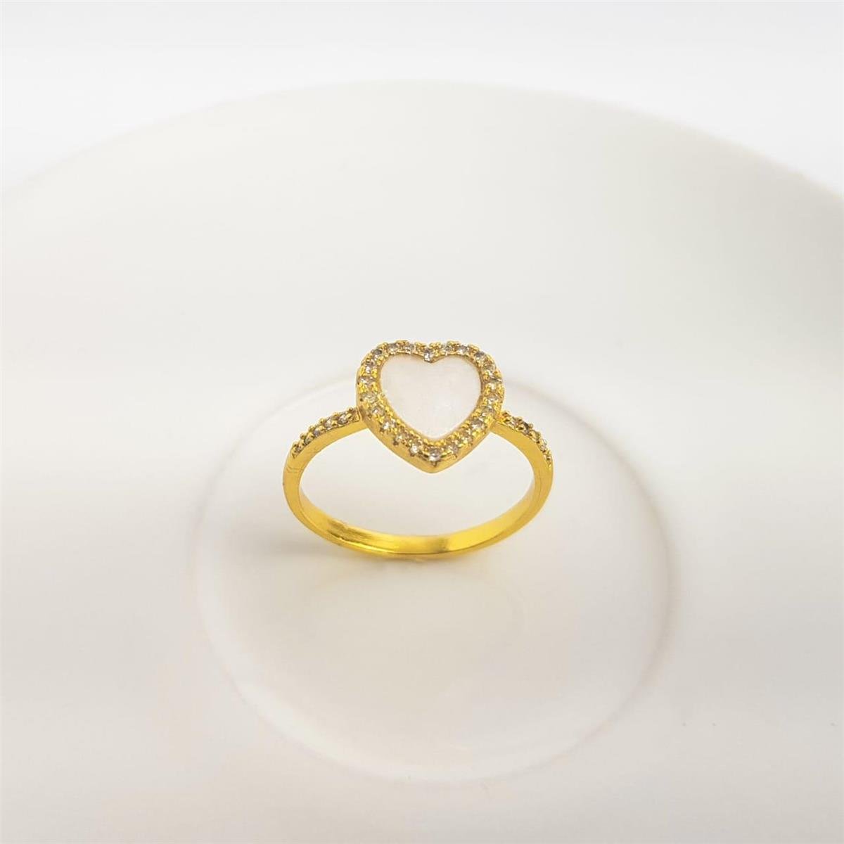 2. ANEL CORAÇÃO MADRIPÉROLA BRANCA E CRAVEJAO AO REDOR/ CRAVEJAO NAS LATERAIS | BANHADO EM OURO 18K