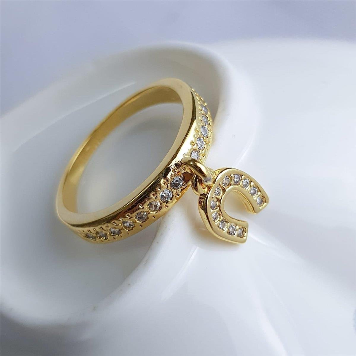2. ANEL CRAVEJADO COM PG FERRADURA CRAVEJADA | BANHADO EM OURO 18K