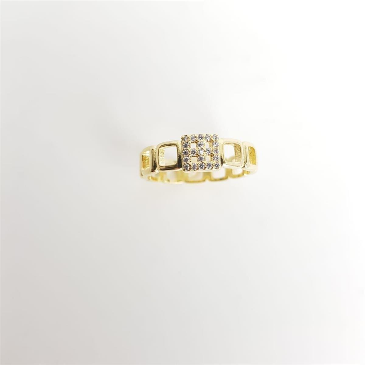 ANEL DE ELOS QUADRADOS VAZADOS E 1 ELO CRAV | BANHADO EM OURO 18K