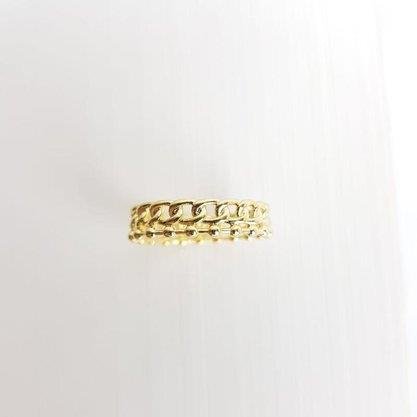 ANEL DE ELOS VAZADOS C FILETES BOLINHAS LISAS |BANHADO EM OURO 18K