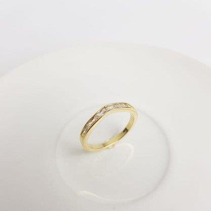 2. ANEL DETALHE EM V BAGUETE EM ZIRC CRISTAL| BANHADO EM OURO 18K
