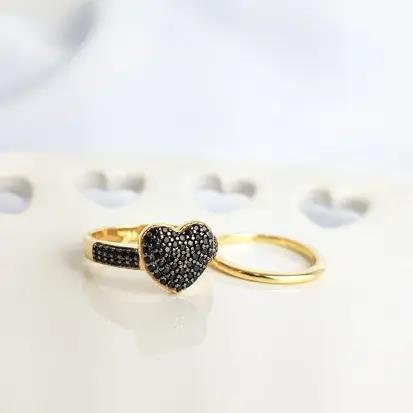 2. ANEL DUPLO ARO E CORACAO CRAV ZIRC NEGRA ECOMM