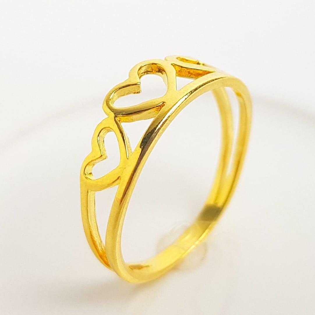 ANEL DUPLO FILETE 3 CORAÇÕES VAZADOS LISOS | BANHADO EM OURO 18K