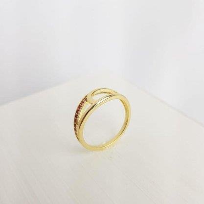 ANEL ELO REDONDO VAZADO E FILEIRA CRAV ROSA| BANHADO EM OURO 18K