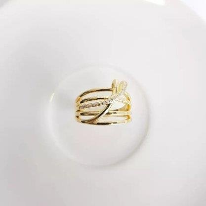 ANEL EM 4 AROS LISOS/2 AROS ENTRELACADOS | BANHADO EM OURO 18K