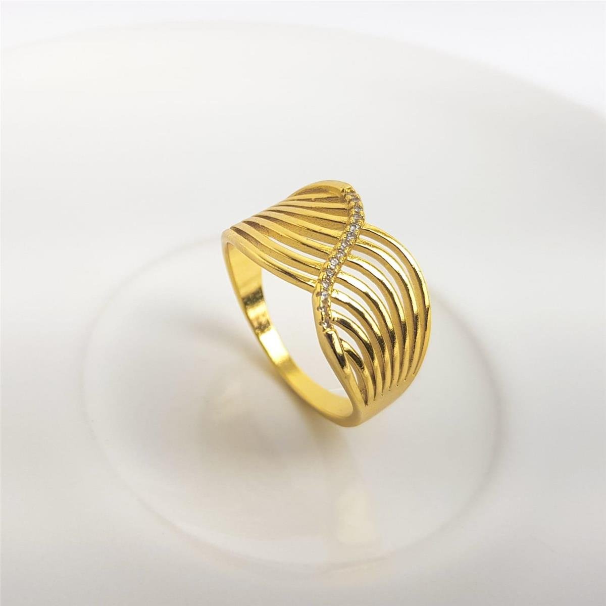 ANEL EM 7 FILETES LISOS ENTRELAÇADO FILETE CRAVEJADO AO MEIO | BANHO DE OURO 18K
