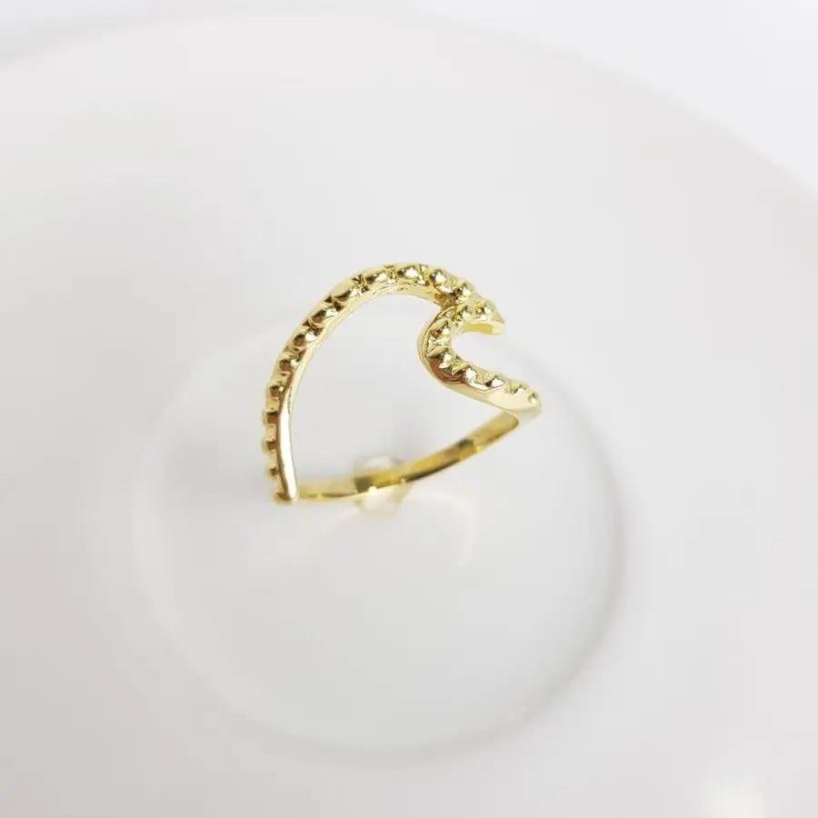 ANEL ENTREMEIO EM ONDA DETALHES EM BOLINHA| BANHADO EM OURO 18K