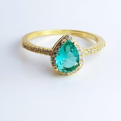 2. ANEL FINO CRAV LATERAIS/PEDRA GOTA VERDE AGUA ECOM