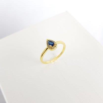 ANEL FINO PEDRA GOTA ROYAL 5MM CRAV AO REDOR| BANHADO EM OURO 18K