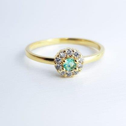 ANEL FINO PEDRA VERDE AGUA BORDA CRAVEJADA | BANHO DE OURO 18K ECOMM