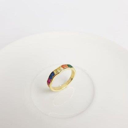 2. ANEL FRENTE ONDULADA BAGUETE EM ZIRC COLOR| BANHADO EM OURO 18K