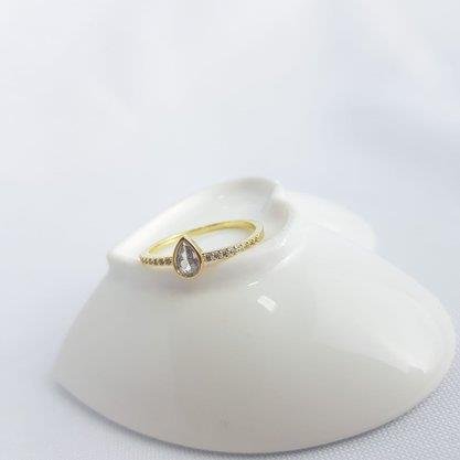 ANEL GRANDE GOTA EM ZIRC MEIO CRAV | OURO 18K ECOMM
