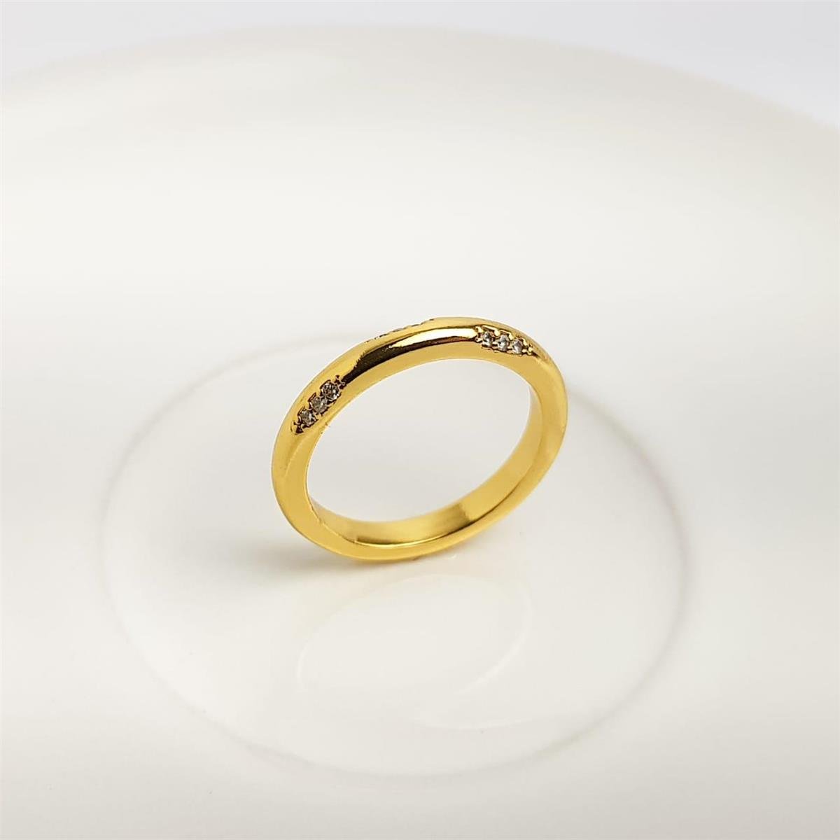 ANEL LISO 3MM FRENTE 4 FILETES CRAVEJADO COM 3 ZIRCÔNIAS | BANHADO EM OURO 18K