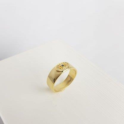 ANEL LISO OLHO GREGO CRAV E ZIRC AZUL | BANHADO EM OURO 18K