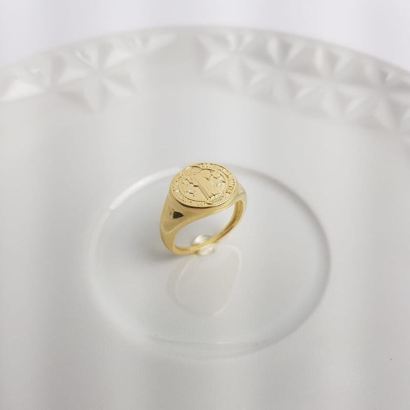 2. ANEL MEDALHA REDONDA IMAGEM SAO BENTO | BANHADO EM OURO 18K